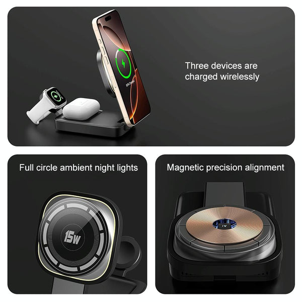 C40 Folding 3 in 1 MagSafe Magnetic Wireless Charger with LED Light(White)