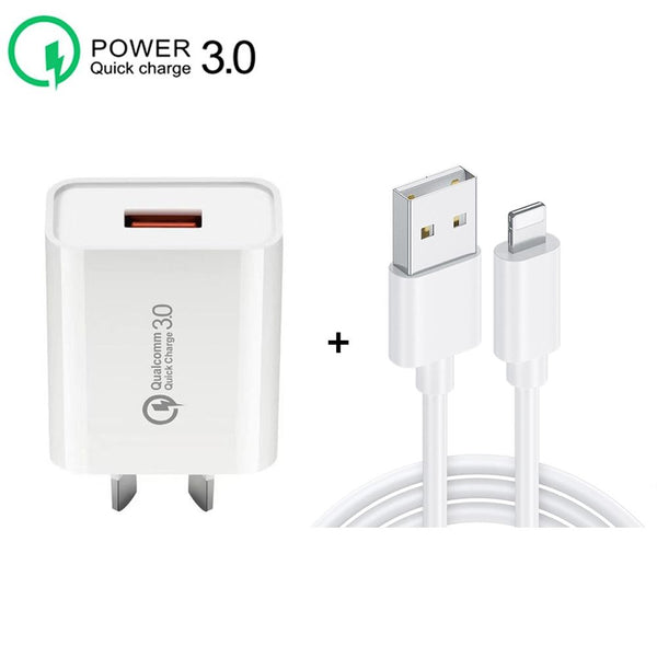 CA-25 QC3.0 USB 3A Fast Charger with USB to 8 Pin Data Cable, AU Plug(White)