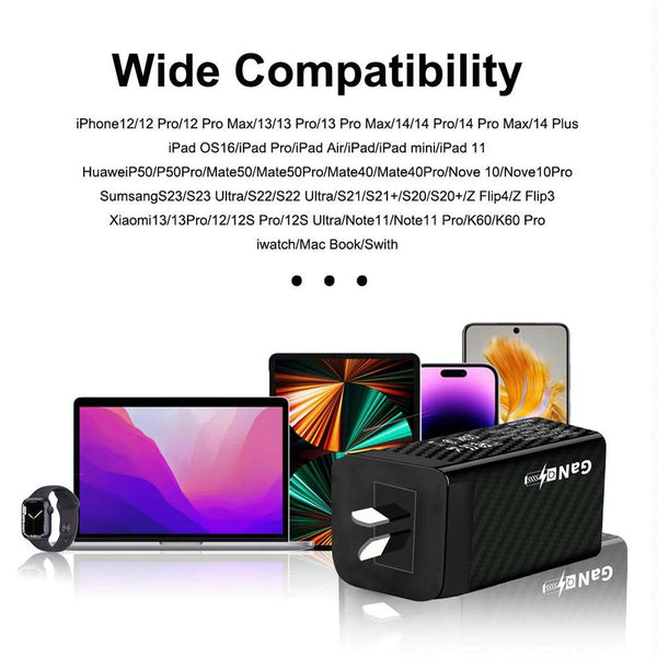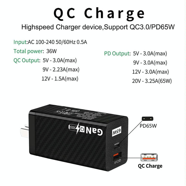 Carbon Fiber GaN PD65W Type-C + QC3.0 USB Quick Charger, AU Plug(White)
