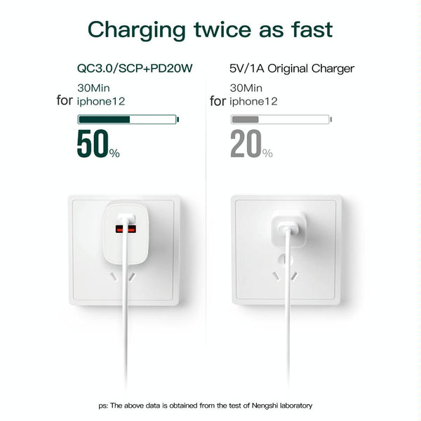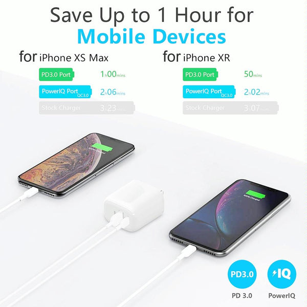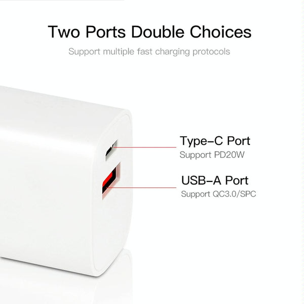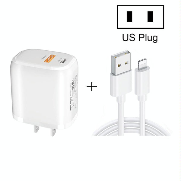 CS-20W Mini Portable PD3.0 + QC3.0 Dual Ports Fast Charger with 3A USB to 8 Pin Data Cable(US Plug)