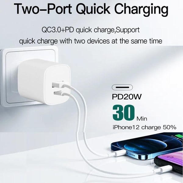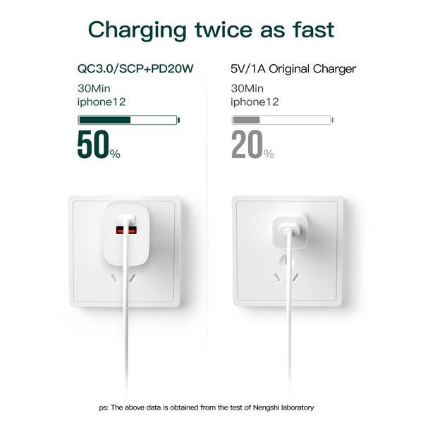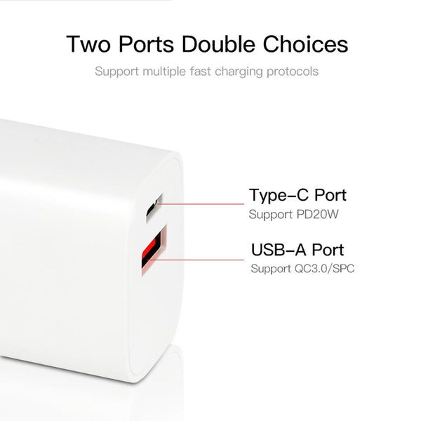 CS-20W Mini Portable PD3.0 + QC3.0 Dual Ports Fast Charger(EU Plug)