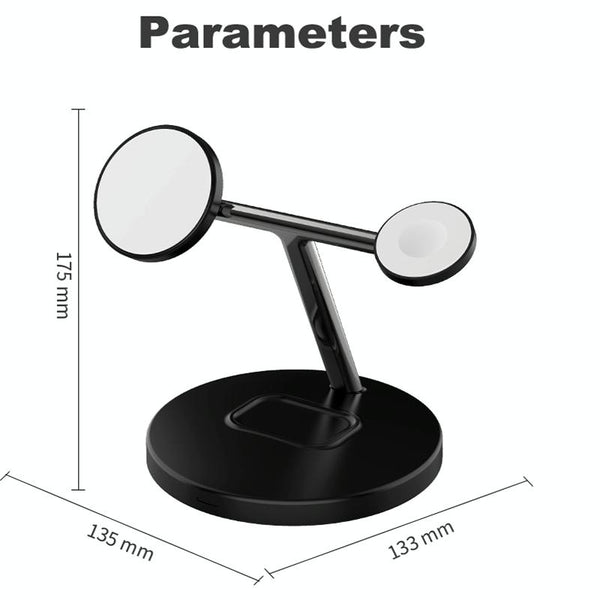 D10 3-In-1 15W Magnetic Mobile Phone Earphone Watch Wireless Fast Charger(Black)