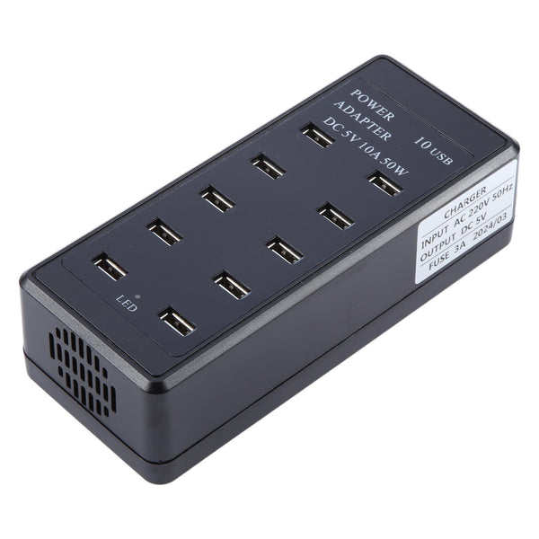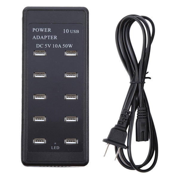 DC 5V 10A 50W 10 USB Multi Port Charger Adapter, Plug:US Plug