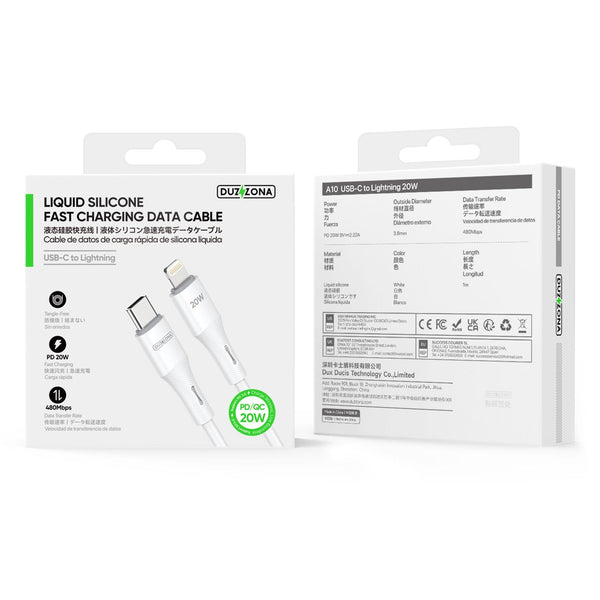 DUZZONA A10 PD20W 480Mbps Type-C to 8 Pin Fast Charging Cable, Length:1m(White)
