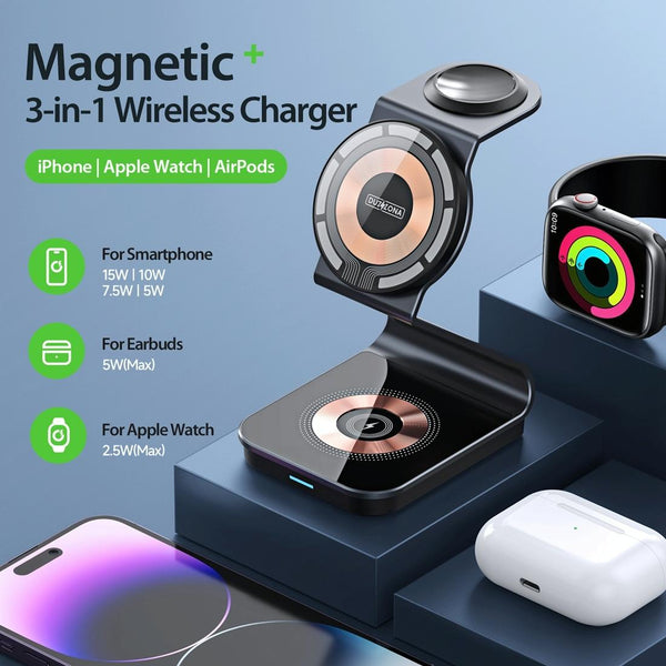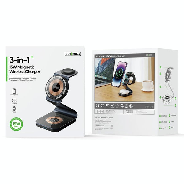 DUZZONA W15 15W 3 in 1 Transparent Magnetic Suction Wireless Charging Stand