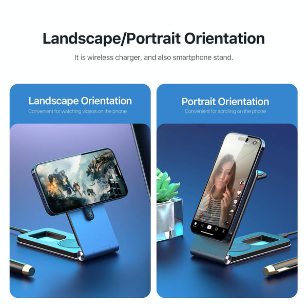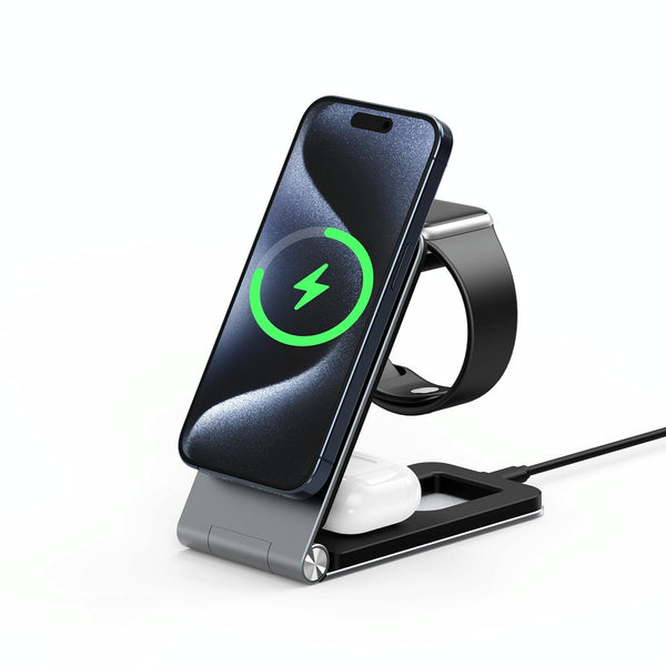 DUZZONA W22 15W 3 in 1 Foldable Magnetic Wireless Charging Stand(Grey)