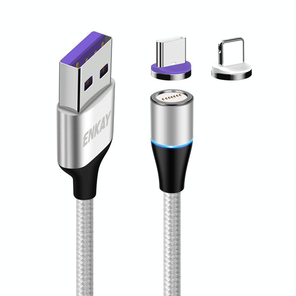 ENKAY 2 in 1 5A USB to Type-C + 8 Pin Magnetic Fast Charging Data Cable with LED Light, Length: 1m(Silver)