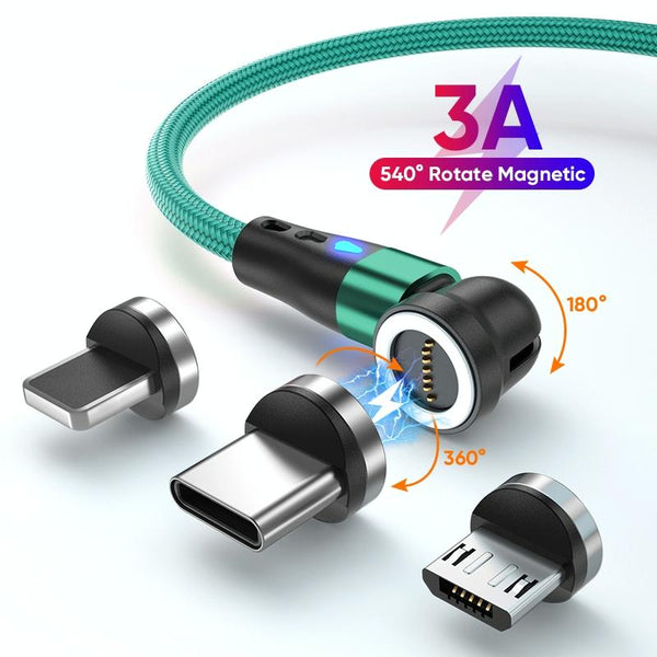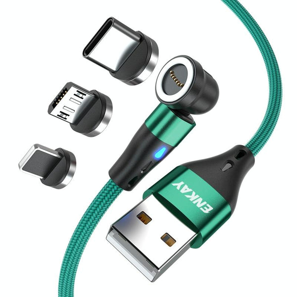 ENKAY 3 in 1 3A USB to Type-C / 8 Pin / Micro USB Magnetic 540 Degrees Rotating Fast Charging Cable, Length:2m(Green)