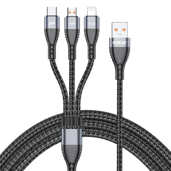 ENKAY 3-in-1 6A USB to Type-C / 8 Pin / Micro USB Multifunction Fast Charging Cable, Cable Length:2m(Grey)