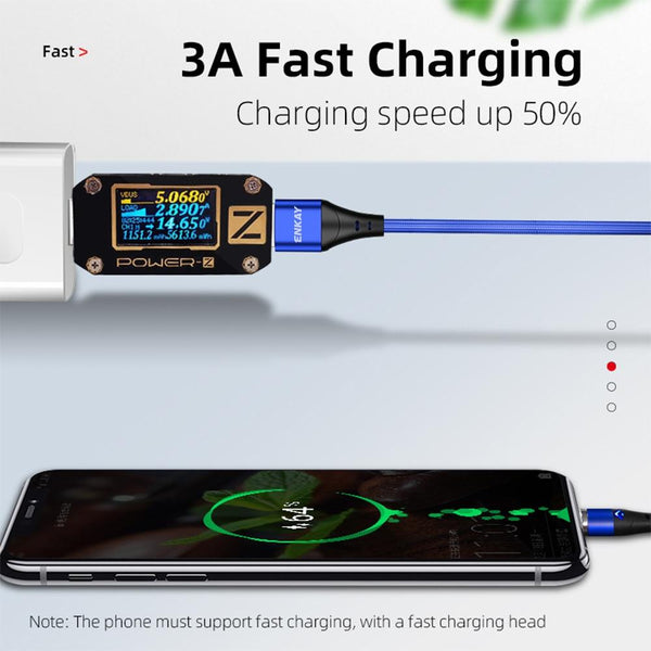 ENKAY 3A USB to 8 Pin Magnetic Fast Charging Data Cable with LED Light, Length:2m(Blue)