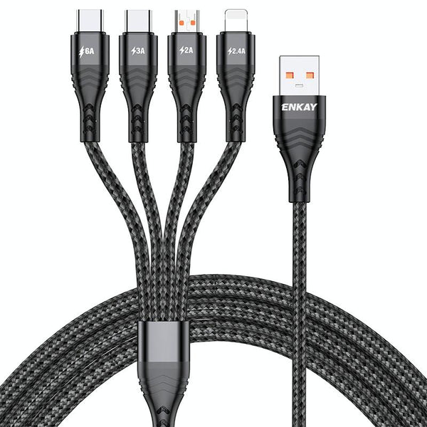 ENKAY 4-in-1 6A USB-A to Type-C / 8 Pin / Micro USB Multifunction Fast Charging Cable, Cable Length:2m(Black)
