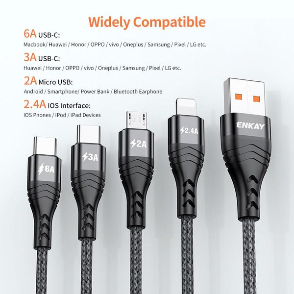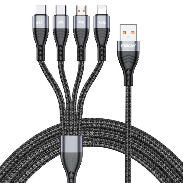 ENKAY 4-in-1 6A USB-A to Type-C / 8 Pin / Micro USB Multifunction Fast Charging Cable, Cable Length:2m(Grey)