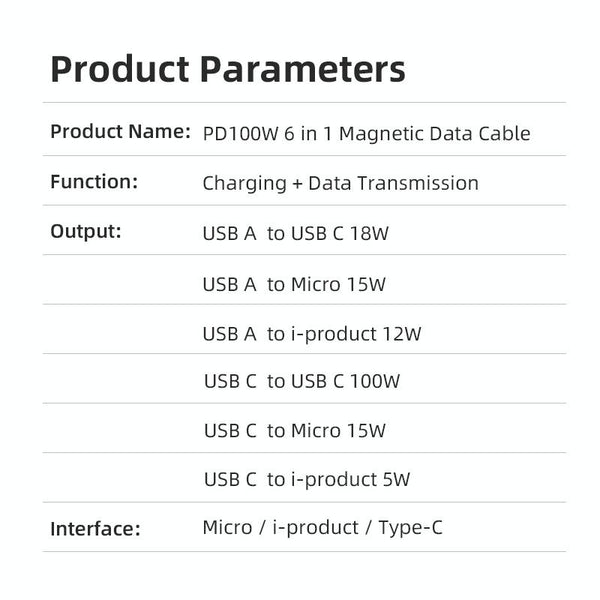 1. 6-in-1 Universal Compatibility: Equipped with all essential charging connectors, featuring 8 Pin, USB-C ,micro connectors, this cable charges IP & android smartphones, tablets, and all other USB-powered devices. 1 cable for all your devices!