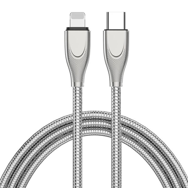 ENKAY ENK-CB128 PD 27W Type-C to 8 Pin Carbon Steel Hose Spring Fast Charging Data Cable, Length:1m(Silver)
