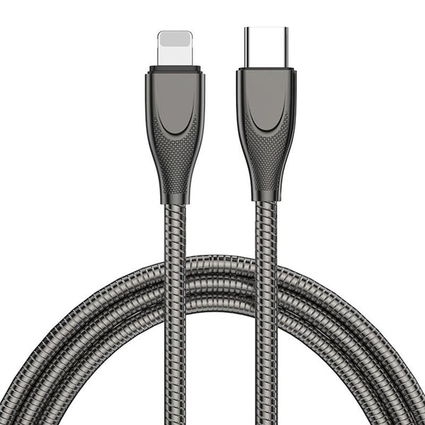 ENKAY ENK-CB128 PD 27W Type-C to 8 Pin Carbon Steel Hose Spring Fast Charging Data Cable, Length:2m(Black)