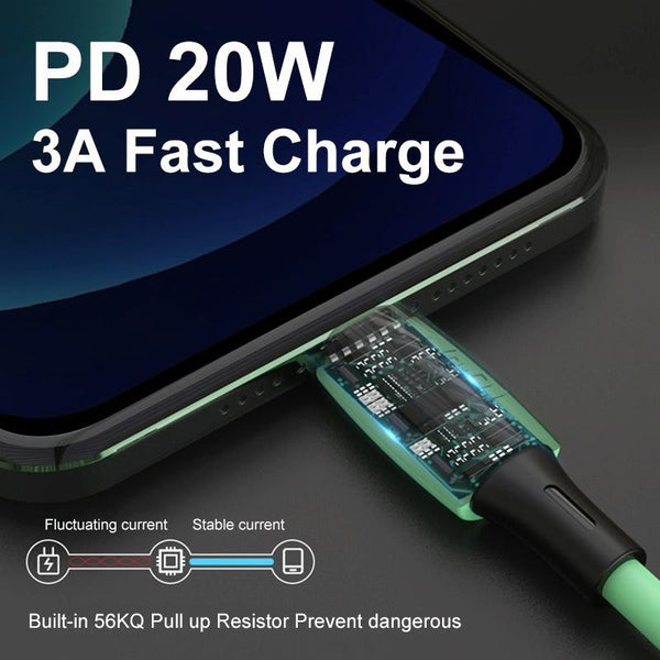 ENKAY Hat-Prince ENK-CB209 PD 20W 3A Type-C to 8 Pin Silicone Data Sync Fast Charging Cable, Cable Length: 1.2m(Green)