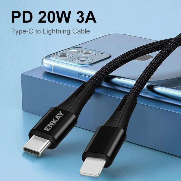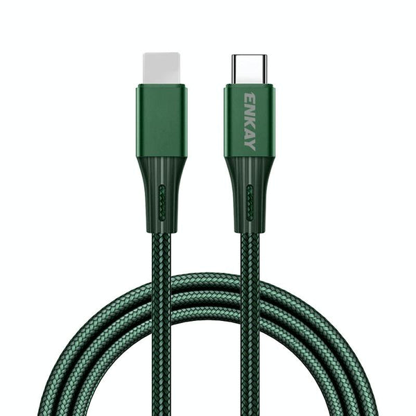 ENKAY PD 20W 3A USB-C / Type-C to 8 Pin Fast Charging Nylon Braided Data Cable, Length:1m(Green)