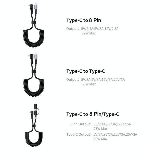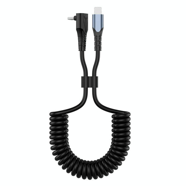 ENKAY PD 27W Type-C to 8 Pin 3A Elbow Expansion Spring Coiled Fast Chrging Data Cable, Length: 1.5m