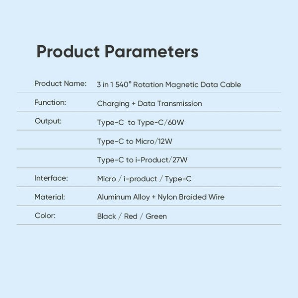 2. 540 DEDREES ROTATION: This magnetic charging head can rotate 540 degrees. Magnetic data cables are more functional & convenient than regular cable: specially designed for Drivers, Handicapped Person, Children and Seniors.
