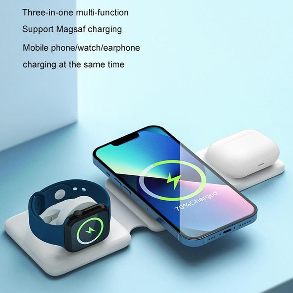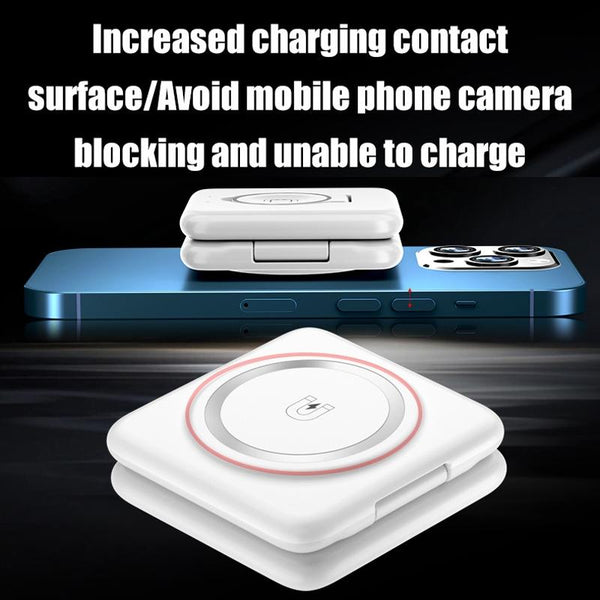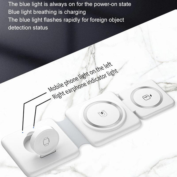 Folding 3 In 1 Wireless Charger For iPhone, Galaxy, Huawei, Xiaomi, LG, HTC and Other QI Standard Smart Phones (White)