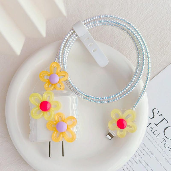 For Apple 18W/20W Flower Shape Charger Protective Case Data Cable Biter(Yellow And Green)