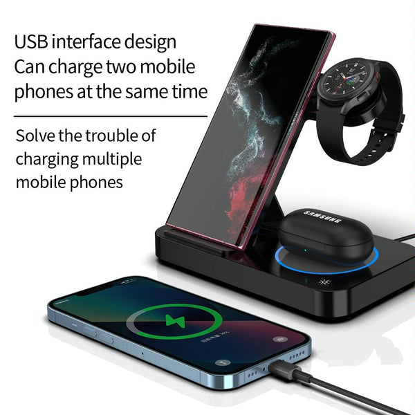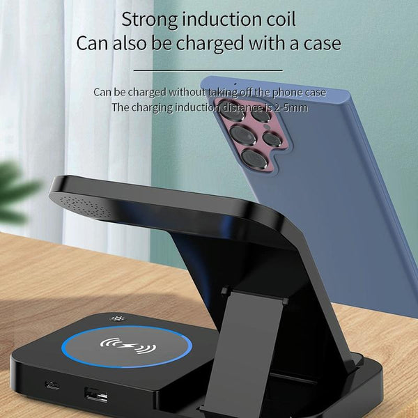 For Apple Watch B18 4 in 1 Mobile Phone / Earphone Universal Foldable Wireless Charger(Black)