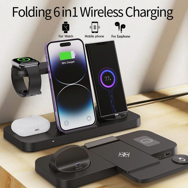 For Huawei Watch B21 6 in 1 Mobile Phone / Earphone Universal Foldable Wireless Charger(Black)