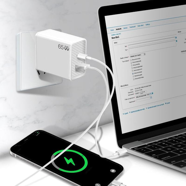 5. Power allocation: The total power of the charger is 48W, and the PD interface can reach 45W. It is recommended to use a single port when charging laptops, as charging with more than 2 interfaces will split.