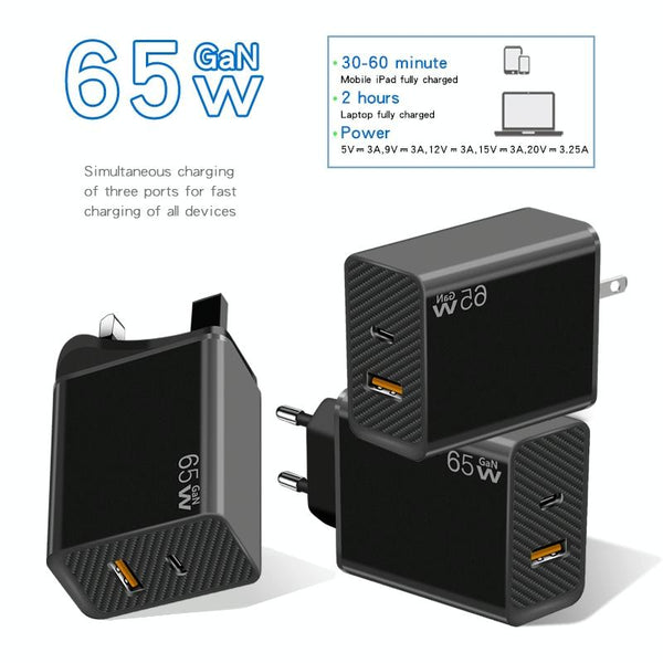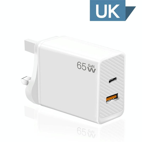 GaN PD48W Type-C PD3.0 + USB3.0 Notebook Adapter UK Plug(White)