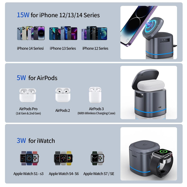 H32 15W 3 in 1 Magnetic Multifunctional Wireless Charger (Grey)