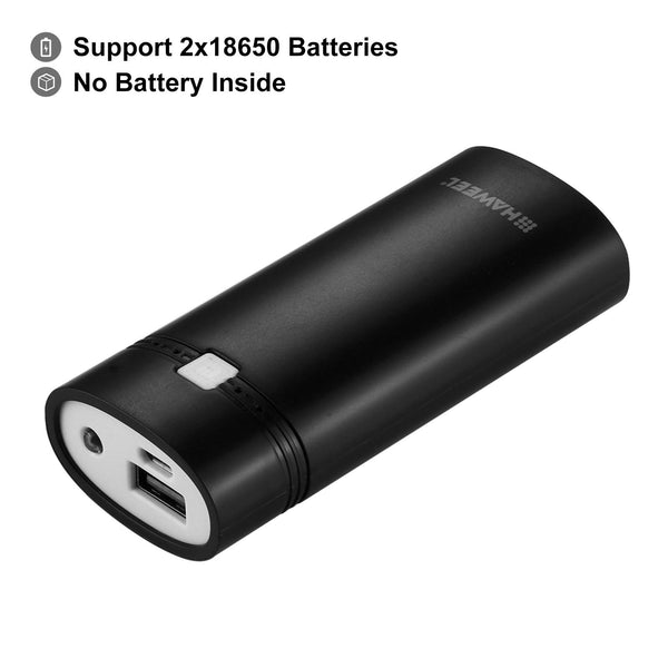 HAWEEL DIY 2x 18650 Battery (Not Included) 5600mAh Power Bank Shell Box with USB Output & Indicator(Black)