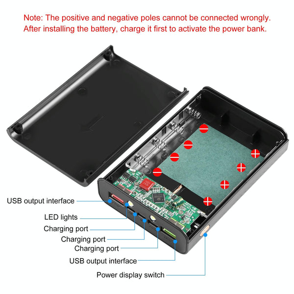 1. 4 x 21700 battery power bank without welding (batteries not included)