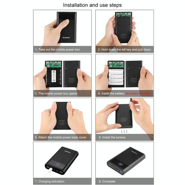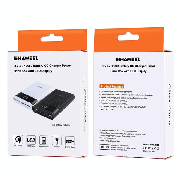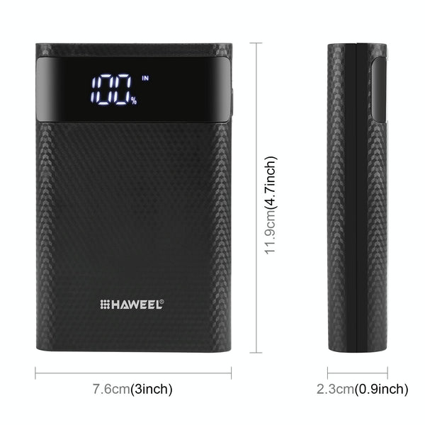 HAWEEL DIY 4x 18650 Battery (Not Included) 12000mAh Dual-way QC Charger Power Bank Shell Box with 2x USB Output & Display, Support QC 2.0 / QC 3.0 / FCP / SFCP / AFC / MTK / BC 1.2 / PD(Black)