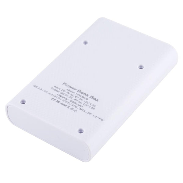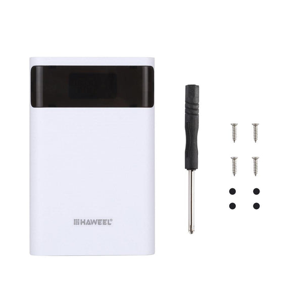 HAWEEL DIY 4x 18650 Battery (Not Included) 12000mAh Dual-way QC Charger Power Bank Shell Box with 2x USB Output & Display,Support QC 2.0 / QC 3.0 / FCP / SFCP /AFC / MTK / BC 1.2 / PD(White)