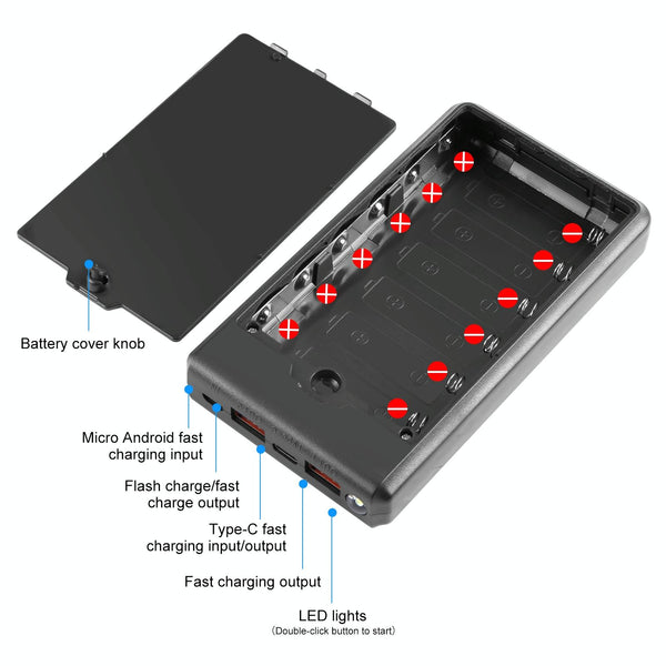 1. 6 x 18650 batteries power bank without soldering (battery not included)