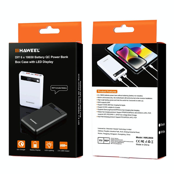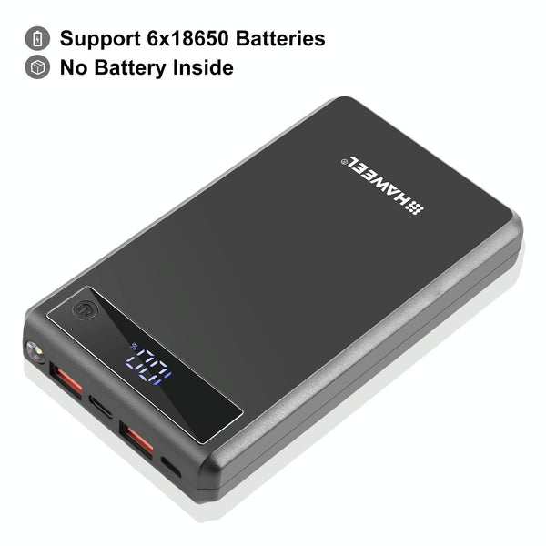 HAWEEL DIY 6 x 18650 Battery 24W Fast Charge Power Bank Box Case with Display, Not Include Battery (Black)
