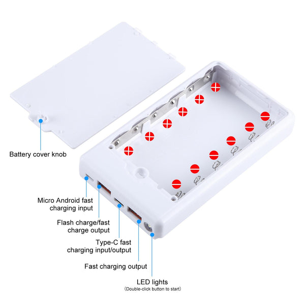 1. 6 x 18650 batteries power bank without soldering (battery not included)