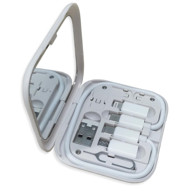 HE-C098 Multi-Functional USB Adapter Charging Cable Kit With Makeup Mirror & Phone Holder(White)