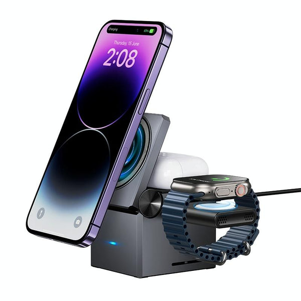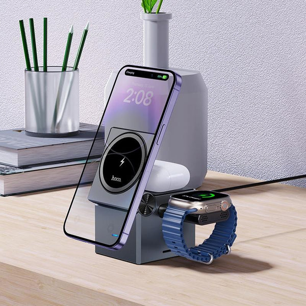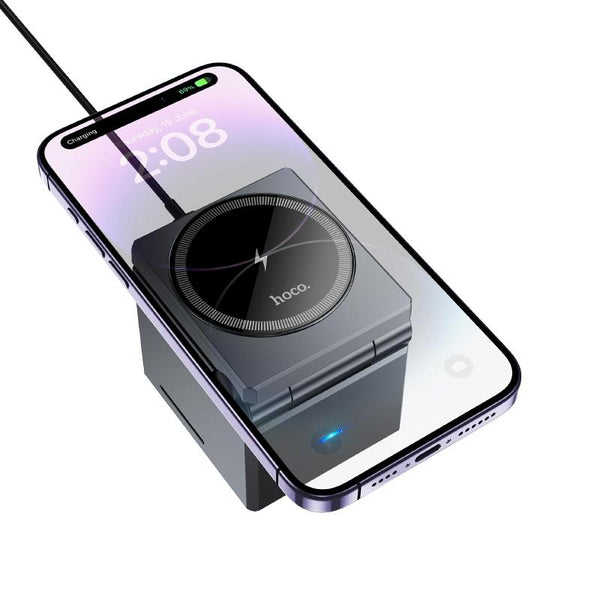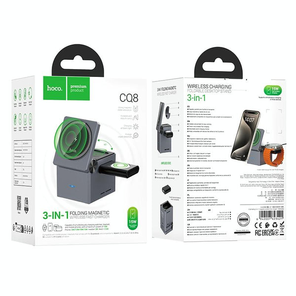 hoco CQ8 3 in 1 Folding MagSafe Magnetic Wireless Fast Charger(Metal Grey)