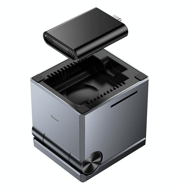 8. Foldable design with a detachable watch charging plate and flexible storage at the bottom.