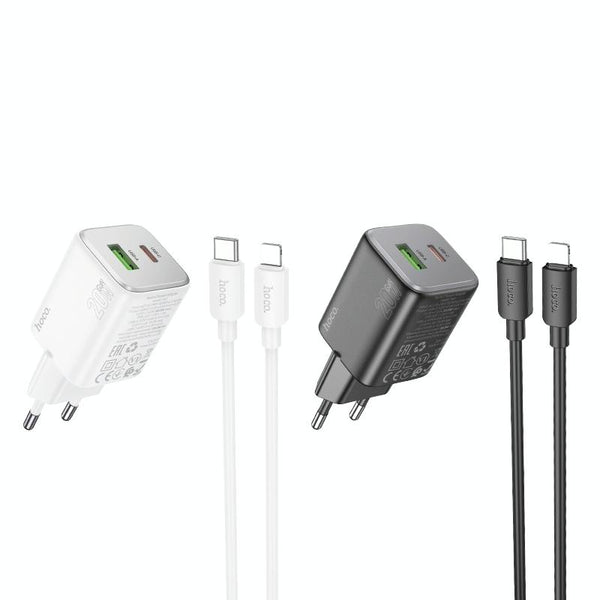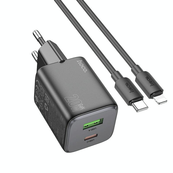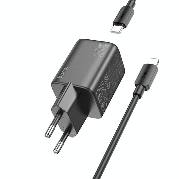hoco N41 Almighty PD20W Type-C + QC3.0 USB Charger with Type-C to 8 Pin Cable, EU Plug(Black)
