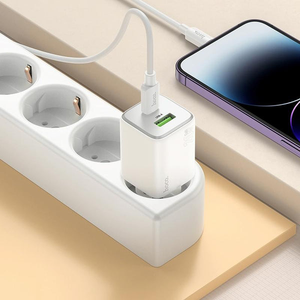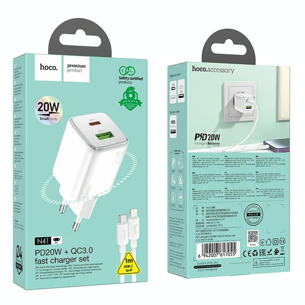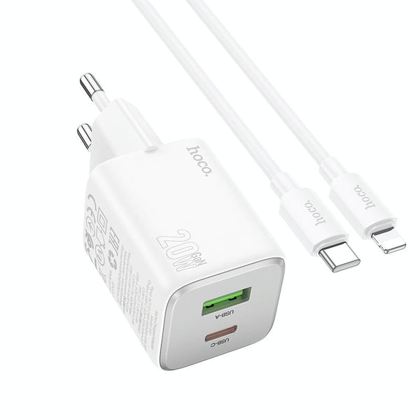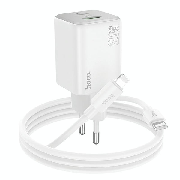 hoco N41 Almighty PD20W Type-C + QC3.0 USB Charger with Type-C to 8 Pin Cable, EU Plug(White)