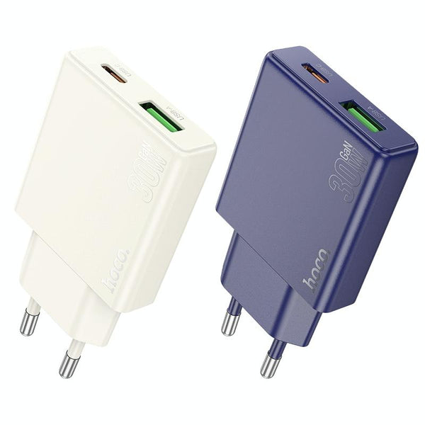 hoco N45 Biscuit PD30W Type-C + QC3.0 USB Charger, EU Plug(Blue)