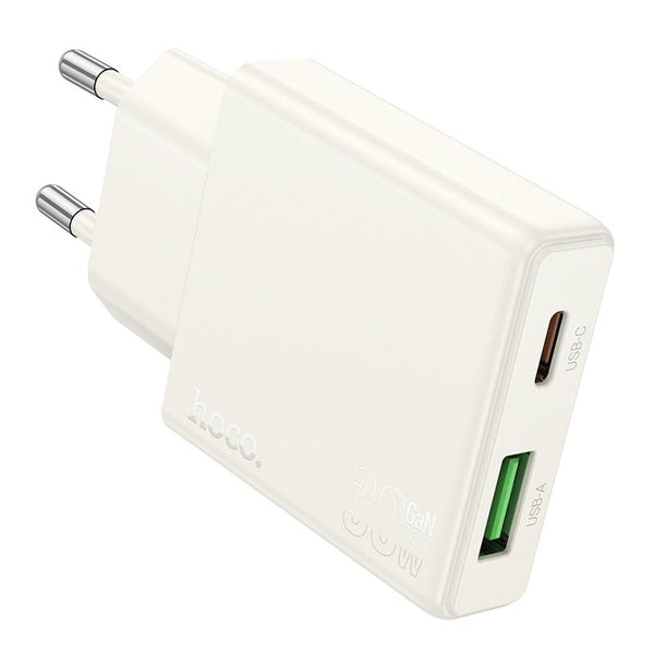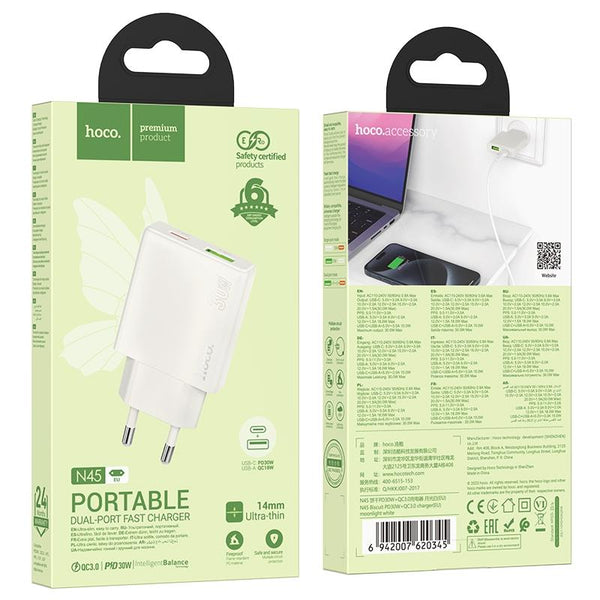 hoco N45 Biscuit PD30W Type-C + QC3.0 USB Charger, EU Plug(White)