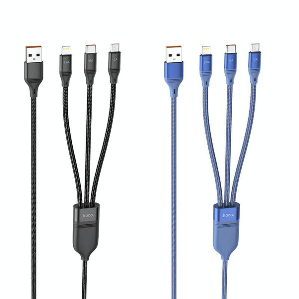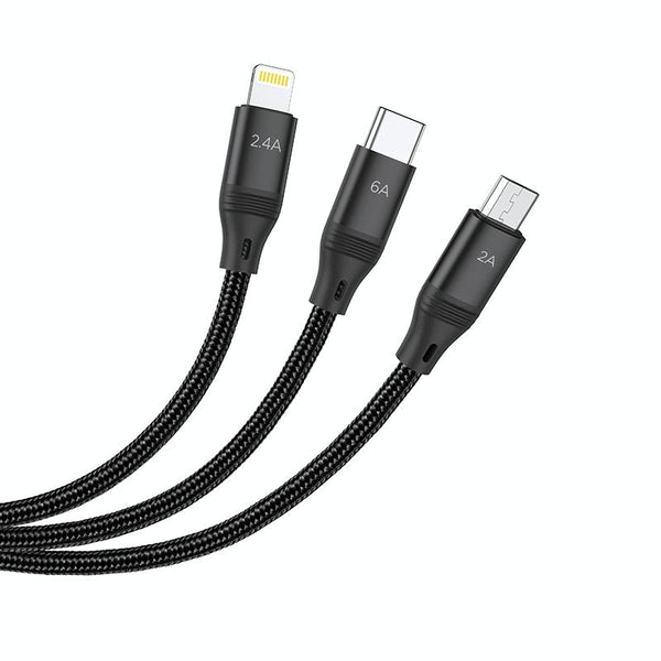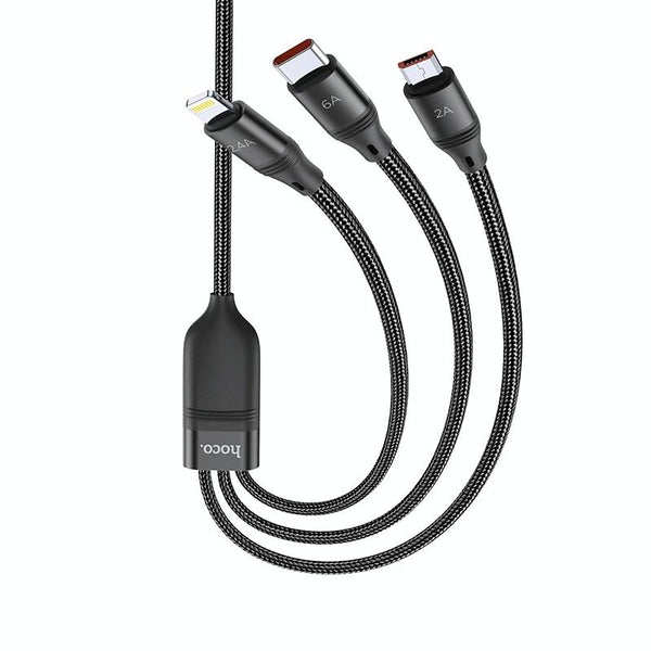 hoco U104 Ultra 3 in 1 6A Fast Charging Data Cable USB to 8 Pin + Micro USB + USB-C / Type-C Cable, Cable Length: 1.2m(Black)