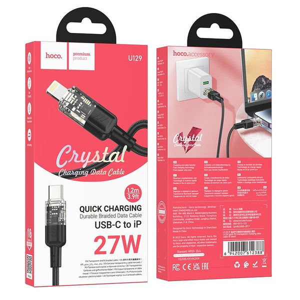 hoco U129 Spirit 1.2m PD27W USB-C / Type-C to 8 Pin Transparent Charging Data Cable(Black)