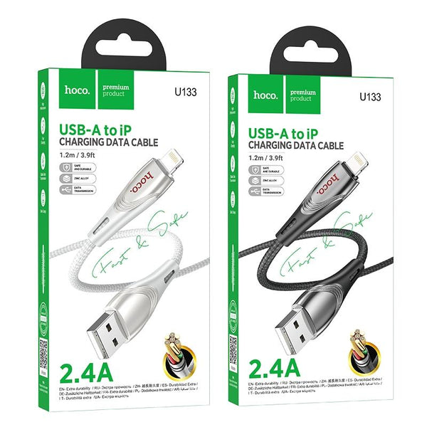 hoco U133 8 Pin to USB-A Braided Fast Charging Data Cable, Length:1.2m(Black)