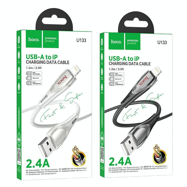 hoco U133 8 Pin to USB-A Braided Fast Charging Data Cable, Length:1.2m(Grey)