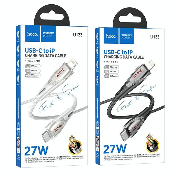 hoco U133 Type-C / USB-C to 8 Pin Braided PD Fast Charging Data Cable, Length:1.2m(Black)