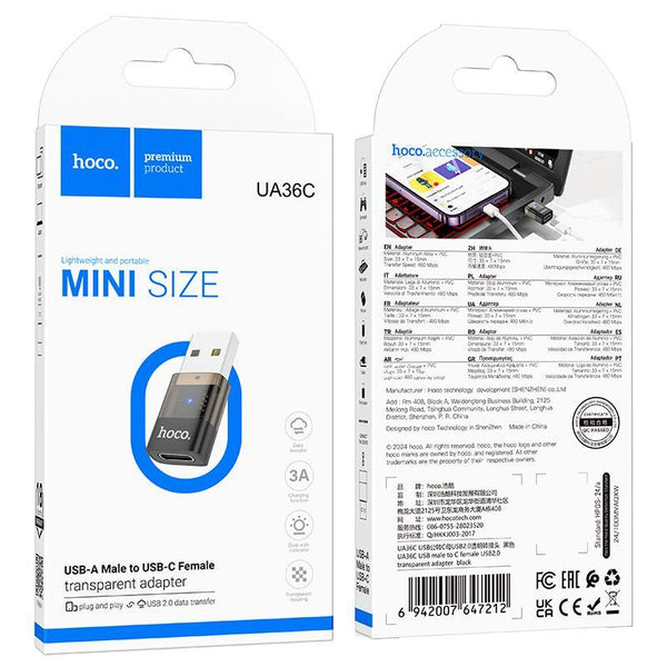 hoco UA36C USB Male to USB-C / Type-C Female OTG Transparent Adapter(Black)
